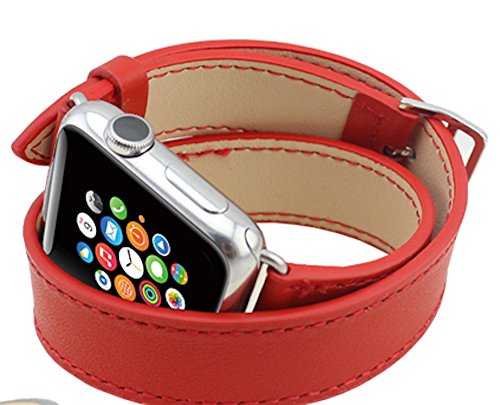 -. Feature : Genuine Leather,Comes in Gift Box / Long Strap to Make Double Loop Around Your Wrist / 4 Colors to Chose / Fits 38mm and 42mm Apple Watch of Your Choice / Silver Adapters Included