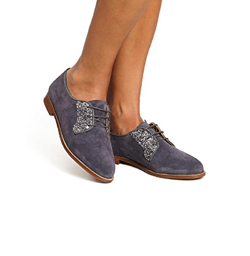Studio : Bobbies Publisher : Bobbies Binding : Apparel Product Description Grey suede derbies, Italian sourced material, calfskin leather lining, tonal lace up closure, glitter inlay, top stitching. Inspired by an era that gave us some of the world's most famous love stories, John-Bobby has created these classic ladies derbies with a difference. Travelling to Italy to find the finest suede, these beautiful Novelist lace ups have been decorated with matching glitter for added glamour. Style with a pair of darted trousers, a blouse and a blazer for instant elegance - whatever the occasion. 0