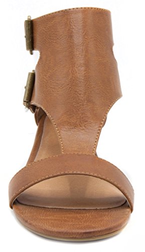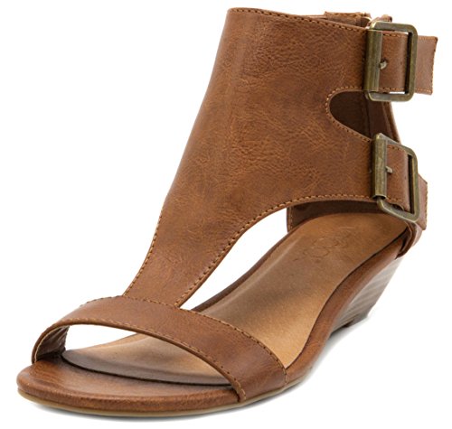 Product DescriptionT-strap demi wedge sandal with two buckles.0