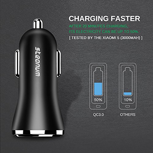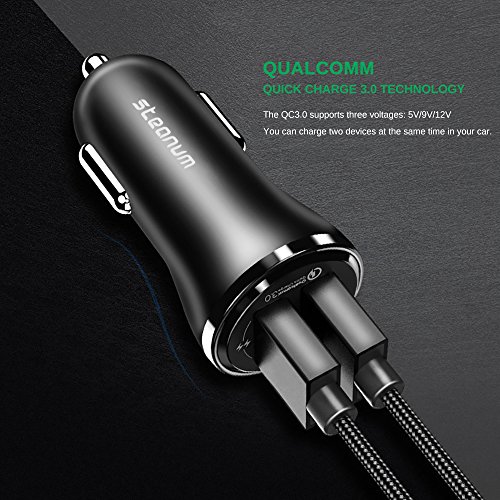 Quick Charge 3.0, Steanum 30W Car Charger with Dual USB Ports for Galaxy Note 8 / S8 / S8 Plus, iPhone 7 / 6s / Plus, iPad Pro / Air 2 / mini, LG, Nexus, HTC and More Qualcomm Certified