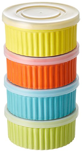 8 Piece, 9 oz. Variety Color Ceramic Ramekin Serve And Storage Set