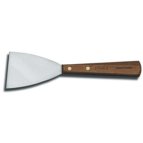 Studio : food service warehouse Publisher : food service warehouse Binding : Kitchen Product Description Griddles get dirty after a whole shift of cooking burgers omelets and other foods. In order to maintain a clean and well-functioning commercial kitchen keeping the right tools on hand is essential. Use this Dexter-Russell 3a€? Griddle Scraper (L4504) as a utensil to scrape up scrambled eggs or other a€œloosea€? food items or as a cleaning tool to remove the burned-on grease and crumbs after a day's work. This scraper has a high-carbon steel blade and a walnut handle secured together with a few brass rivets. 0