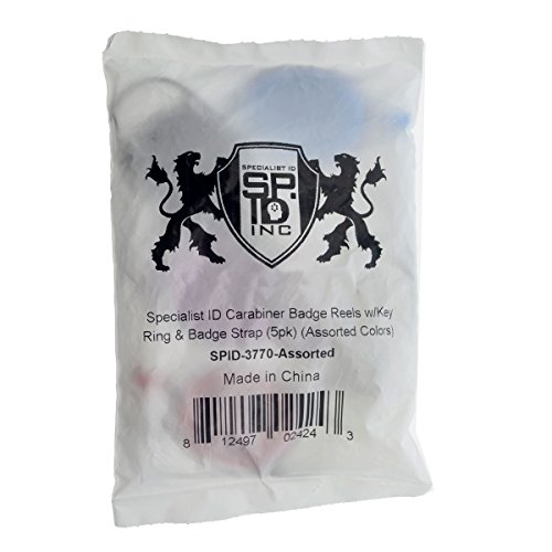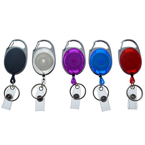 Specialist ID Premium Retractable Carabiner Badge Reels with Key Ring and Badge Strap (Pack of Five) (Assorted Colors)