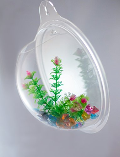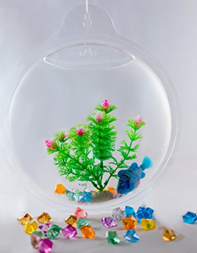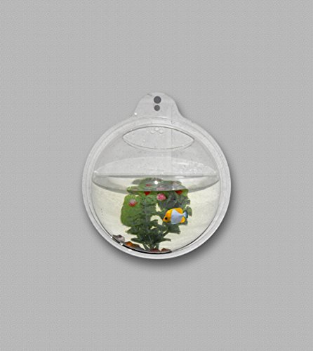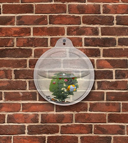 Wall mount fish bowl. Great choice for those who love to have a pet fish, but don't have enough countertop or table space to put it. This fish bowl is made of acrylic, which is stronger than glass and doesn't easily shatter. It also weighs less than a glass bowl. This fish bowl also adds a decorative touch to your wall. Saves counter space and adds a decorative element to your wall. Fill with water, flowers or plants for a fun display. Made of acrylic. Dimension: 10 inch diameter.Feature