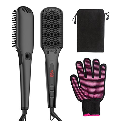 Hair Straightener Brush, Breett Anion Hair Straightening Flat Iron Ceramic Brush with Free Heat Resistant Glove and Cloth Pocket