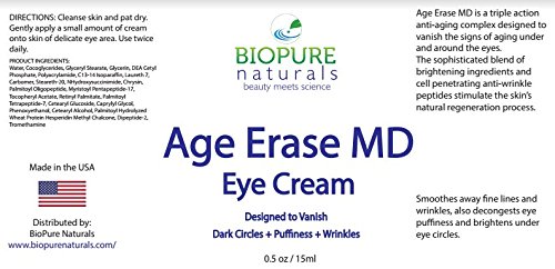 - BUY WITH CONFIDENCE: At BioPure Naturals, we have great faith in our Age Erase MD eye cream. After all, many of us use it ourselves! If, however, the cream you receive happens to falls short of your expectations, don't hesitate to contact us