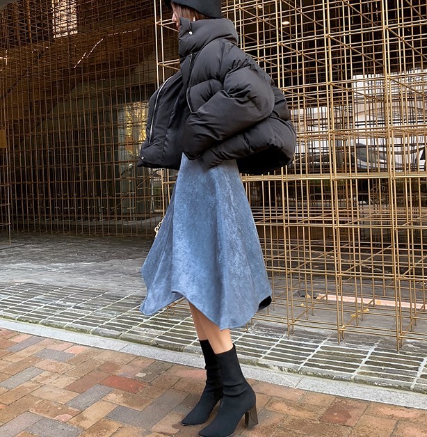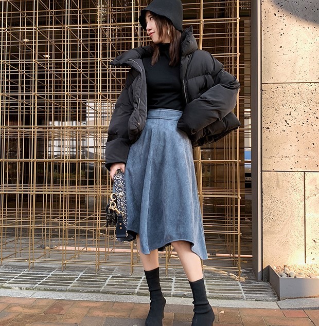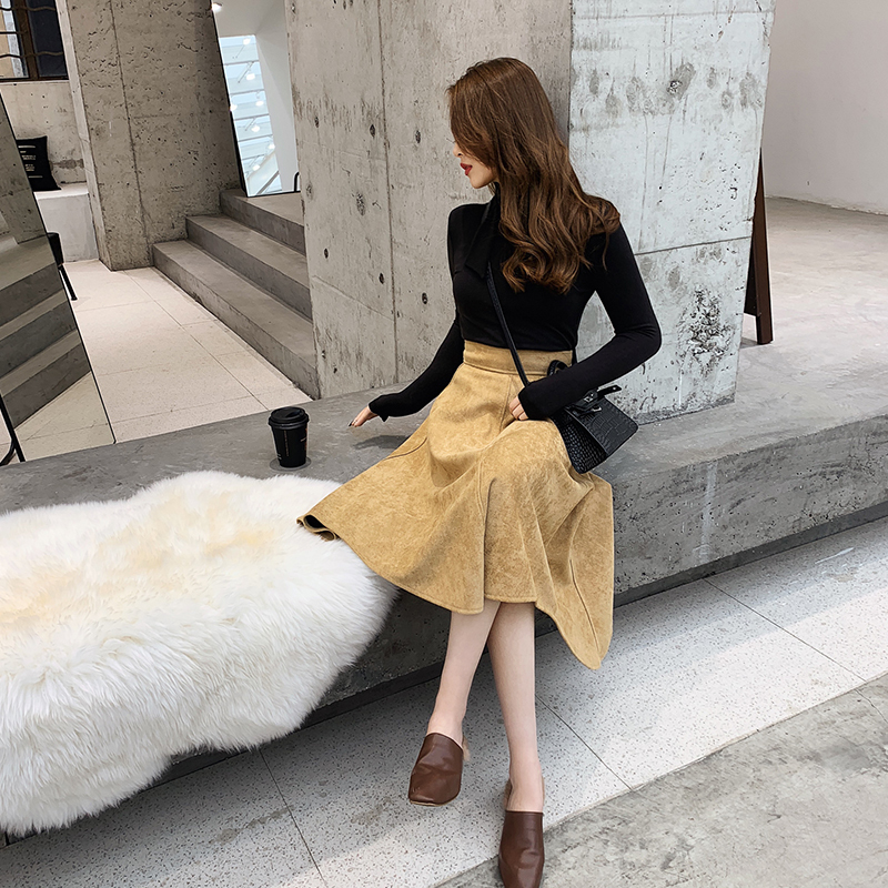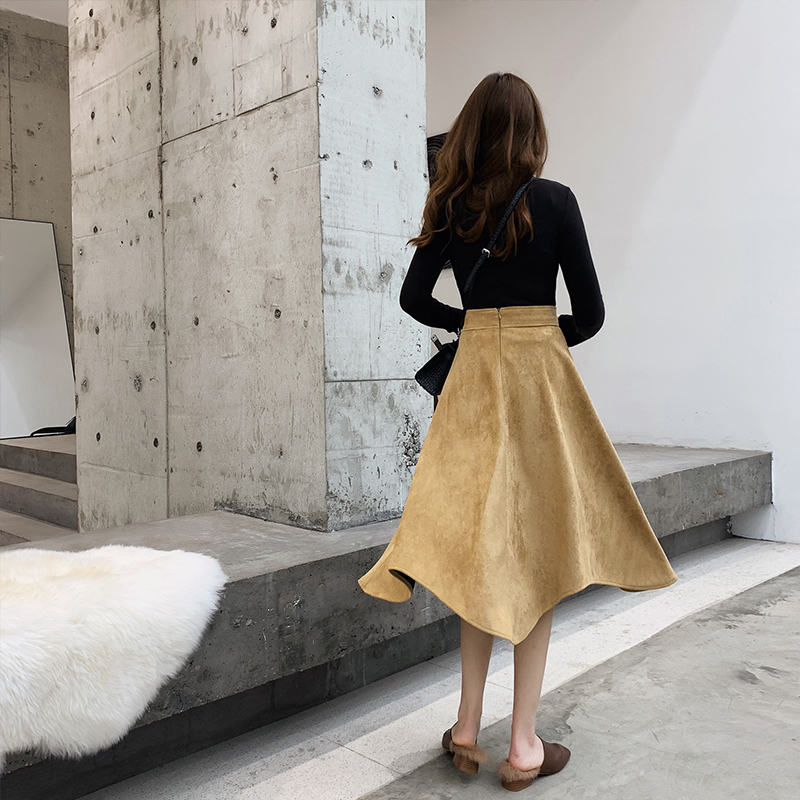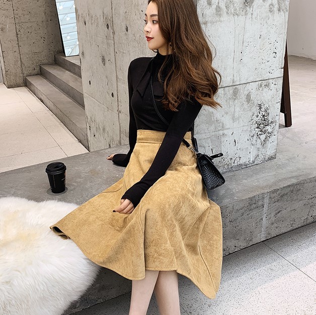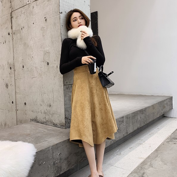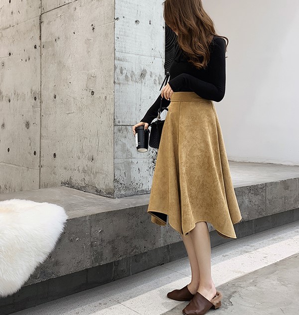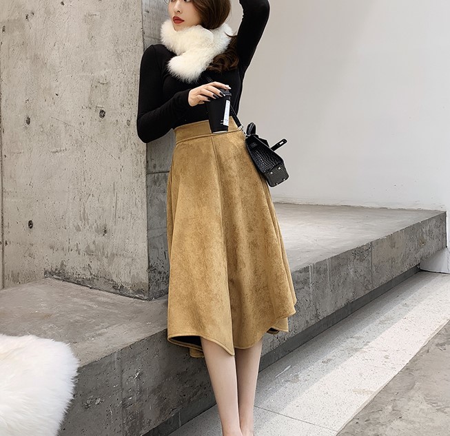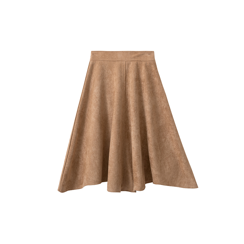 暖かみのあるスエード生地のフレアスカートです。