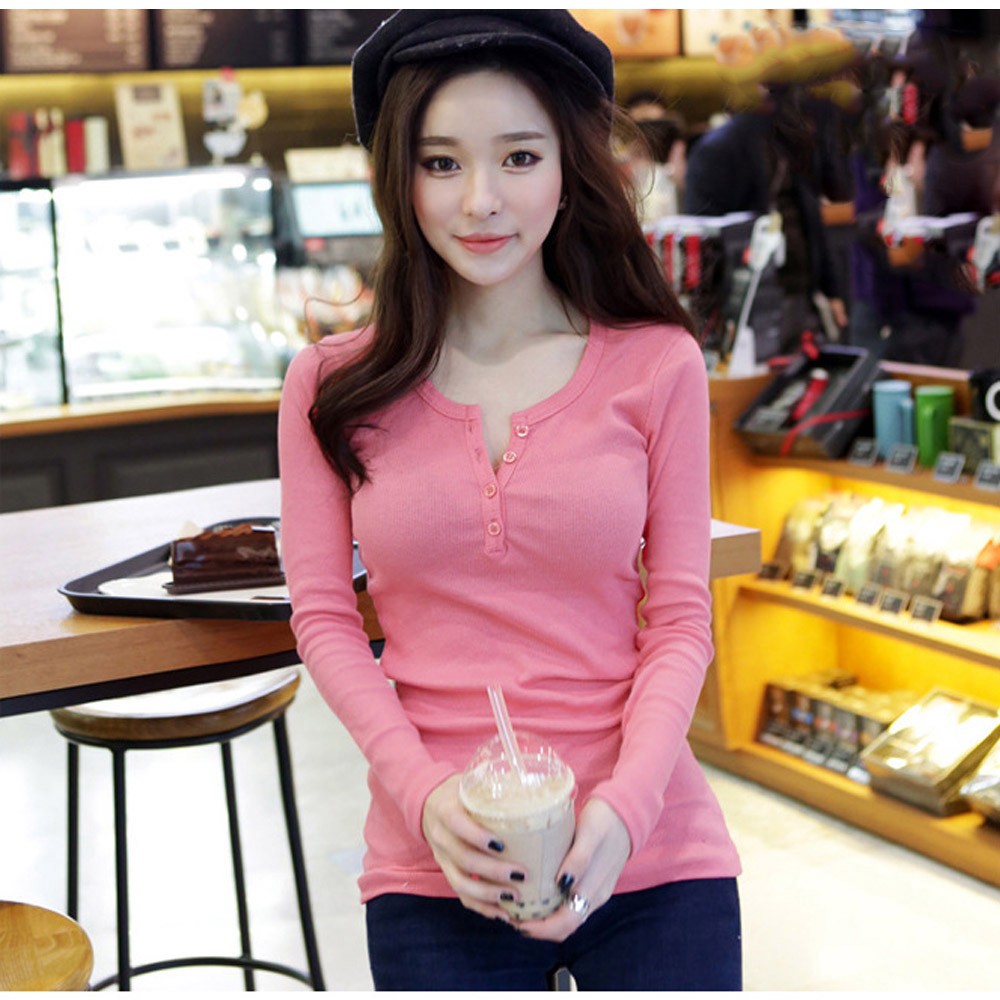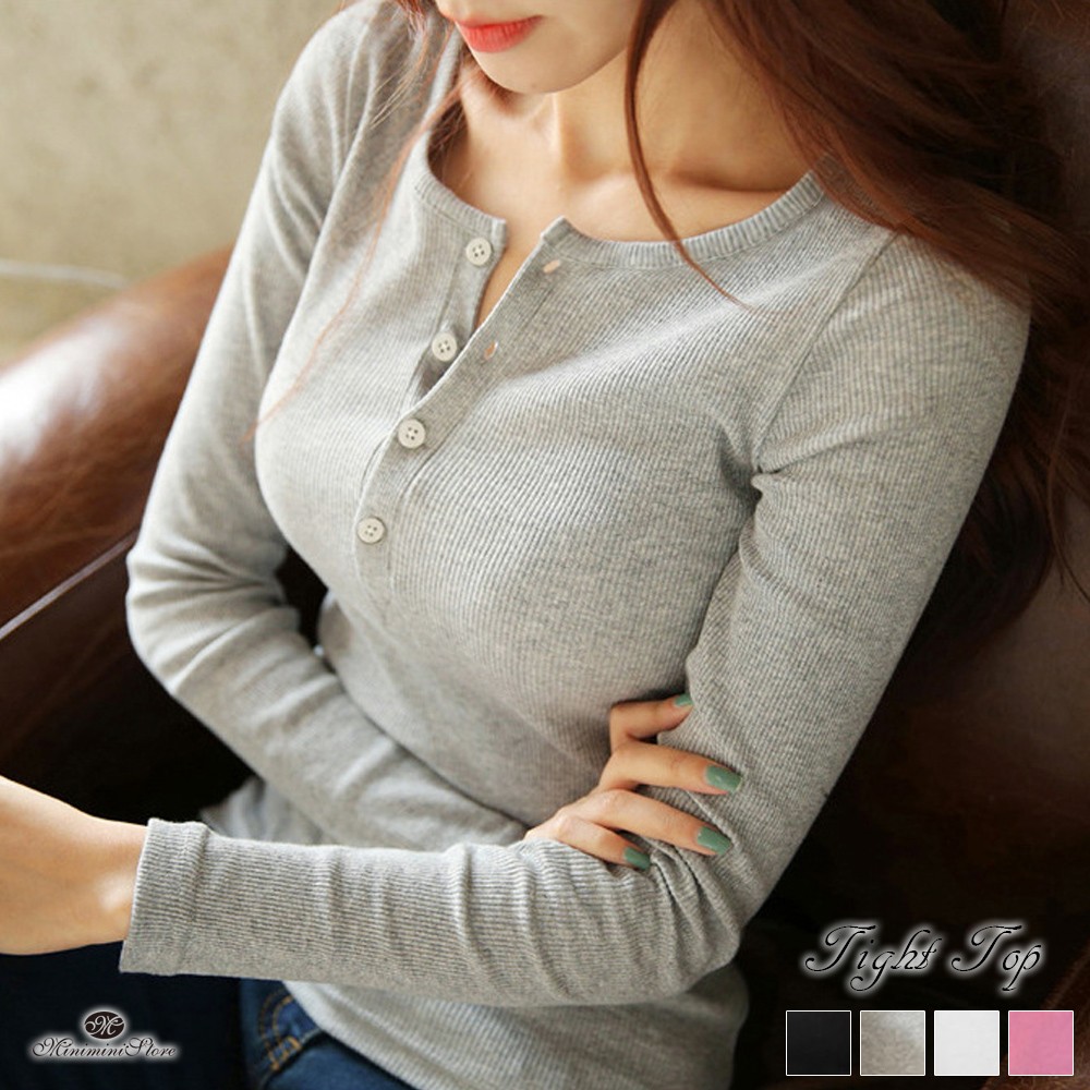 胸元にシングルブレストボタンデザインが施されてとてもセクシーなカットソー