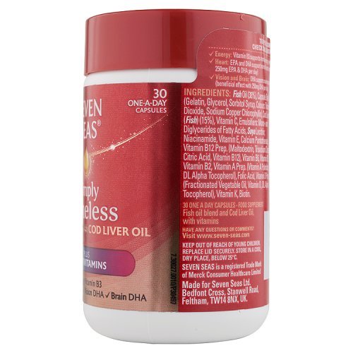 -. Binding : Health and Beauty -. Brand : SEVEN SEAS HEALTH CARE -. EAN : 5012335792005 -. Feature : A Rich source of essential vitamins / It helps maintain supple and flexible joints / It helps maintain healthy heart and circulation / It is an excellent source of vitamin A -. IsAdultProduct : 0 -. Label : SEVEN SEAS HEALTH CARE -. Manufacturer : SEVEN SEAS HEALTH CARE -. Model : 530592 -. MPN : 530592 -. PackageQuantity : 1 -. PartNumber : 530592 -. ProductGroup : Health and Beauty -. ProductTypeName : HEALTH_PERSONAL_CARE -. Publisher : SEVEN SEAS HEALTH CARE -. Size : 30caps -. Studio : SEVEN SEAS HEALTH CARE -. Title : Seven Seas Cod Liver Oil And Multi Vitamins 30 Capsules