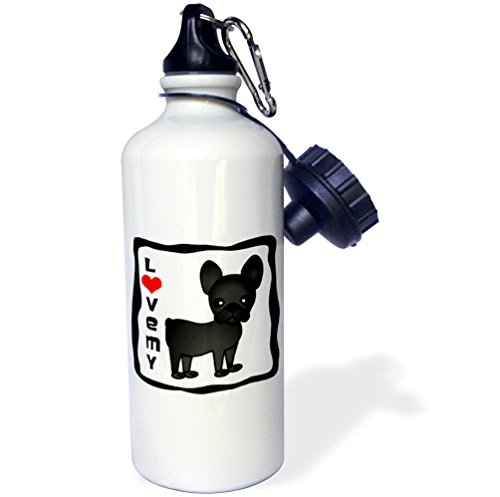 3dRose wb_25321_1 I Love My French Bulldog Black Brindle Sports Water Bottle, 21 oz, White
