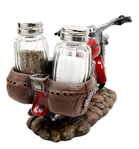 Atlantic Collectibles Old Retro Red Chopper Motorcycle Bike Decorative Glass Salt Pepper Shakers Holder Resin Figurine 7.5"L