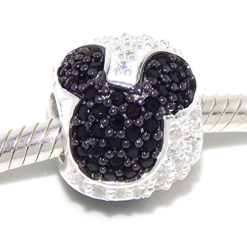 -. Title : .925 Sterling Silver "CZ Mouse Silhouette" Charm Bead for Snake Chain Charm Bracelets