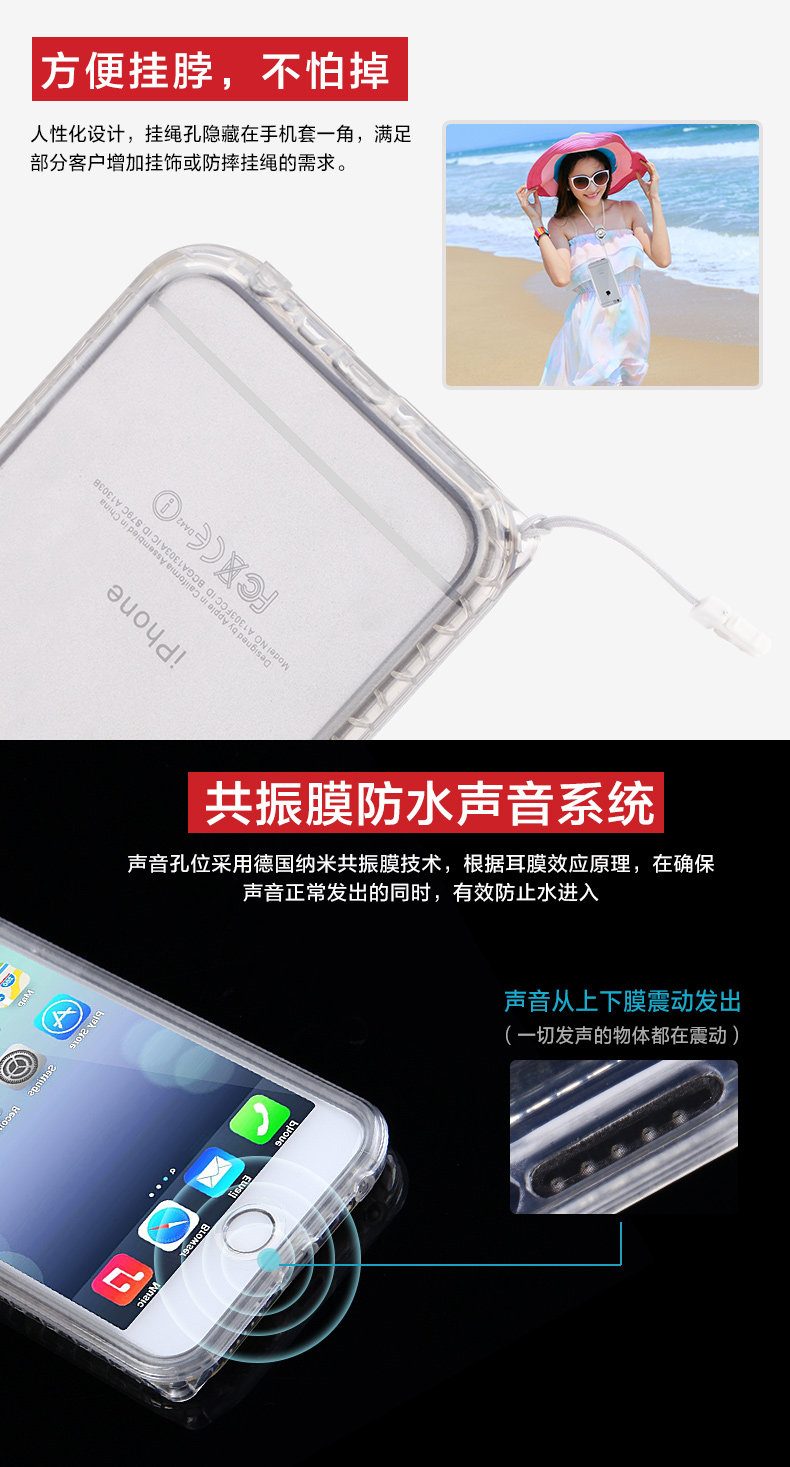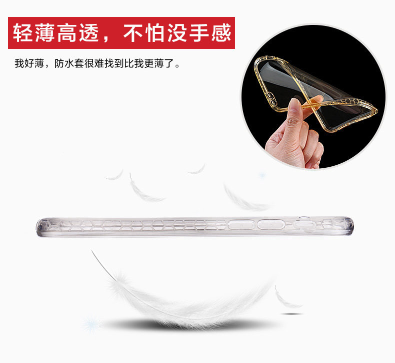 ①轻薄全透明,②真防水,③不堵声音,④可挂绳
