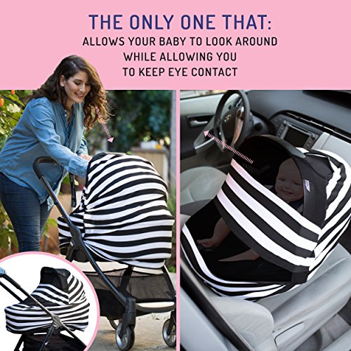 -. Title : Organic Large Cotton Nursing Cover – 6-in-1 Design for Car Seats, Strollers and Doubles as Stylish Scarf – Convenient Mesh Inserts Provide Eye Contact and Ventilation by The Stork and I