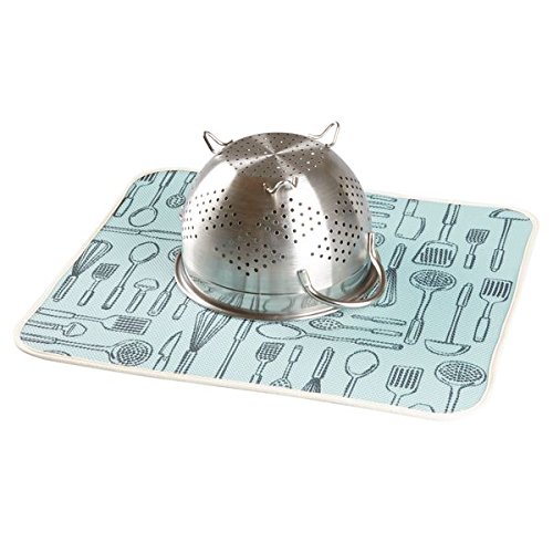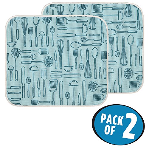 mDesign Utensils Kitchen Countertop Absorbent Dish Drying Mat - Pack of 2, 18" x 16", Aqua Blue/Ivory