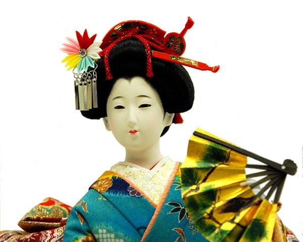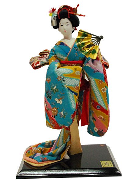 日本人形 8号 水色 頭師熊倉聖祥 巾24×奥21×高さ40cm