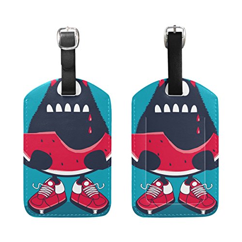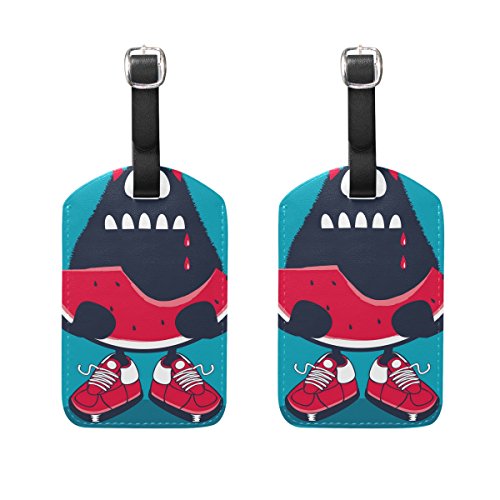 (My Little Nest)/Accessories/Luggage, Bags Travel/DIRECT FROM USA/Travel Luggage Tag Cute Monster Eat Watermelon PU Leather Baggage Suitcase Tag Name Address ID ...