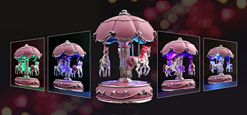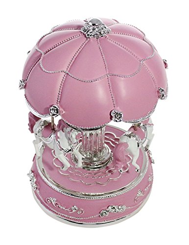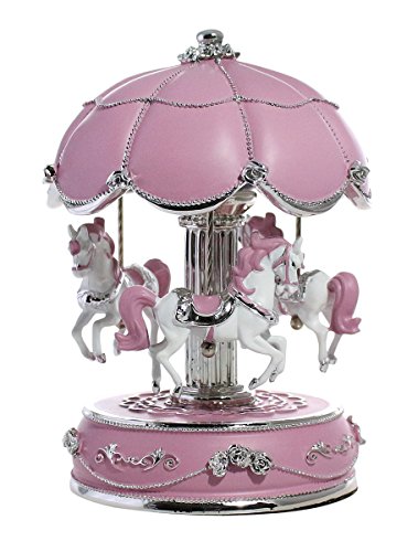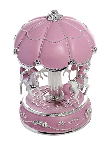 Ornamental Decorative LED Pink Carousel Horse Music Box with Floral Umbrella Design Roof- 5.9" | Valentine's Day Gift For Her