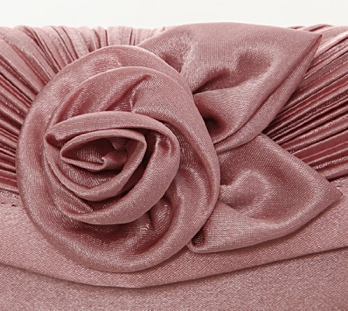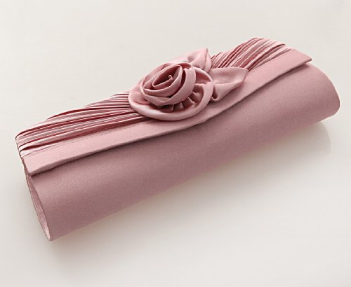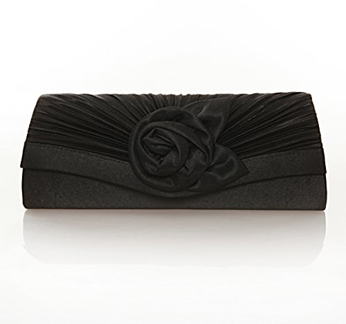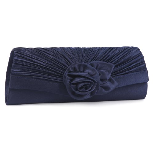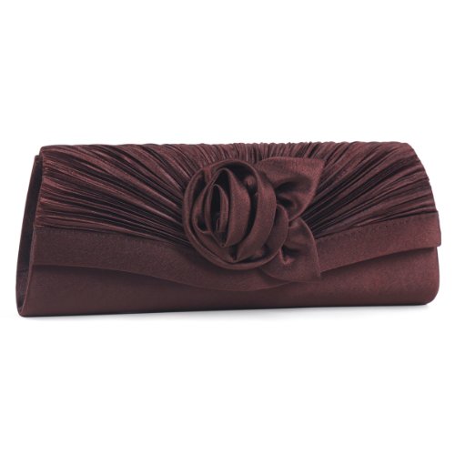 Damara Womens Satin Pleated Flower Front Evening Bag Clutch Handbag