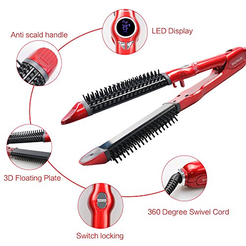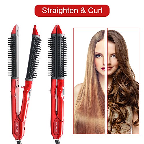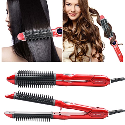 VITI Professional 3 In 1 Electric Hair Ceramic Curler/Travel Hair Straightener/ Hot Brush Flat Iron Straightener and Curling with Hot Round Brush Ceramic Coated Plates Wide Set for Women Girls