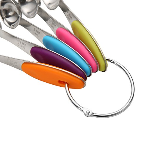1. Made of high quality stainless steel and will never rust or corrode 2. Can be removed from each individual tool or easily hang up in your kitchen to save space. 3. Sturdy and durable. Metric measurement clearly engraved on the handles will never worn off or washed off
