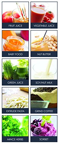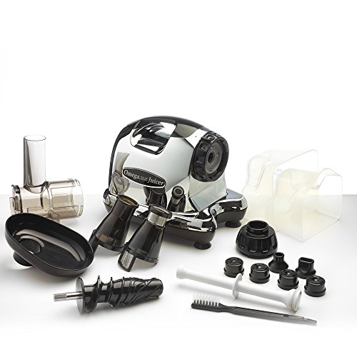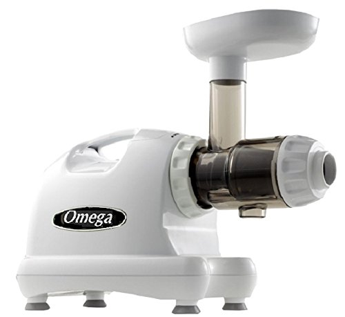 -. Brand : Omega -. Feature : Easy-to-use masticating juicer with powerful motor / Low speed of 80 RPMs; no foaming, clogging, or heat build-up with 110 volt / High juice yield; auto pulp-ejection function for continuous juicing / Dual-stage juicing system; quiet operation; UL- and cUL-approved. VOLTAGE: 110V / Measures 14-1/2 by 6-1/2 by 15-1/2 inches; 15-year warranty. The juicer screen is already installed in the juicer. -. Label : Omega -. Manufacturer : Omega -. ProductGroup : Kitchen -. ProductTypeName : KITCHEN -. Publisher : Omega -. Studio : Omega -. Title : Omega J8006 Nutrition Center masticating Dual-stage Juicer Juice Extractor