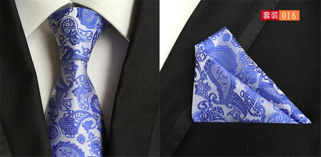 | [해외]SCST 브랜드 Cravate 새로운 Gravata 블루 페이즐리 인쇄 Neckltie 남성 실크 넥타이 일치 포켓 광장 2 개 세트 A045 |