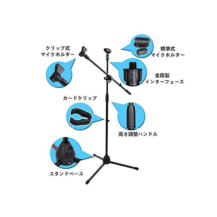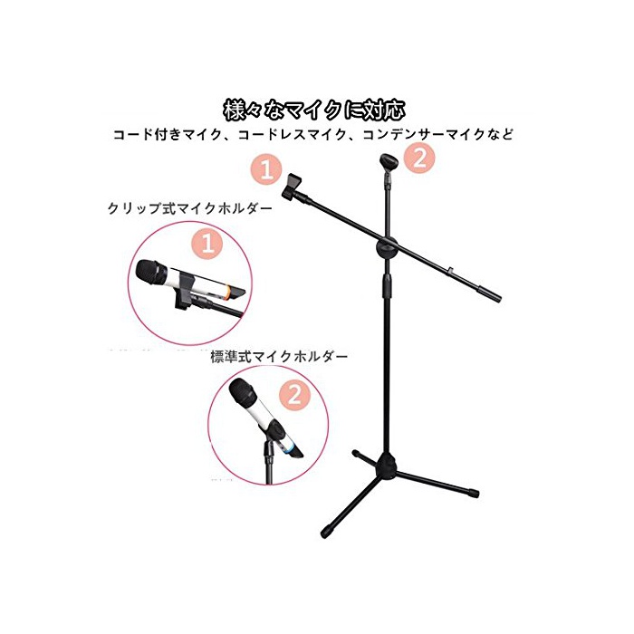 원본상품명: WYAO ブム マイクスタンド ストレト マイクホルダ付き 折りたたみ 高さ調節 ブラック MS-106