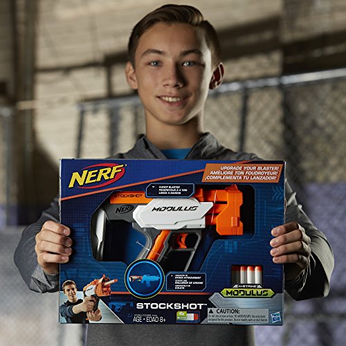 ReleaseDate : 2017-08-04 Studio : Hasbro Publisher : Hasbro Binding : Toy Product Description The Nerf Modulus StockShot blaster converts from a blaster to a stock attachment. Use it on its own to blast into battle, or attach it to a Nerf Modulus blaster (sold separately) as an adjustable stock for extra stability. It converts easily so battlers can customize and adapt quickly as the battle or mission changes. Nerf and all related properties are trademarks of Hasbro. 0