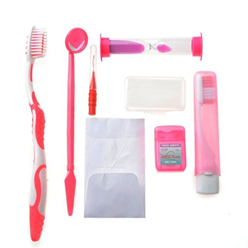 -. Binding : Health and Beauty -. Brand : Doc.Royal -. Feature : Color: blue/pink / Toothbrush - Soft bristle with easy grip / Dental Mirror - helps to check swollen gums and tooth decay / Dental stain eraser - Helps erase heavy plaque build up and food deposits. Great for smokers and those consuming a lot of tea / coffee / Suitable for cleaning around bracket and orthodontic ligature ties -. Label : Doc.Royal -. Manufacturer : Doc.Royal -. MPN : DR-00001 -. PackageQuantity : 8 -. PartNumber : DR-00001 -. ProductGroup : Health and Beauty -. ProductTypeName : HEALTH_PERSONAL_CARE -. Publisher : Doc.Royal -. Studio : Doc.Royal -. Title : Doc.Royal Fresh Breath 8 in 1 Dental Teeth Oral Care Kit with Dental Floss for Travel, Home (8pcs/Kit)