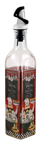 -. Binding : Kitchen -. Brand : Grant Howard -. Color : Clear -. EAN : 0023055508994 -. Feature : Colorful and whimsical Italian design / Gravity pouring spout for Hands free open and close use / Bottle holds 16 ounces of liquid / Measures 2-1/4" square by 11-1/4" high -. Label : Grant Howard -. Manufacturer : Grant Howard -. Model : 50899 -. NumberOfItems : 1 -. PackageQuantity : 1 -. ProductGroup : Kitchen -. ProductTypeName : KITCHEN -. Publisher : Grant Howard -. Studio : Grant Howard -. Title : Grant Howard 50899 16 oz Italian Chef Oil and Vinegar Cruet, Clear -. UPC : 023055508994