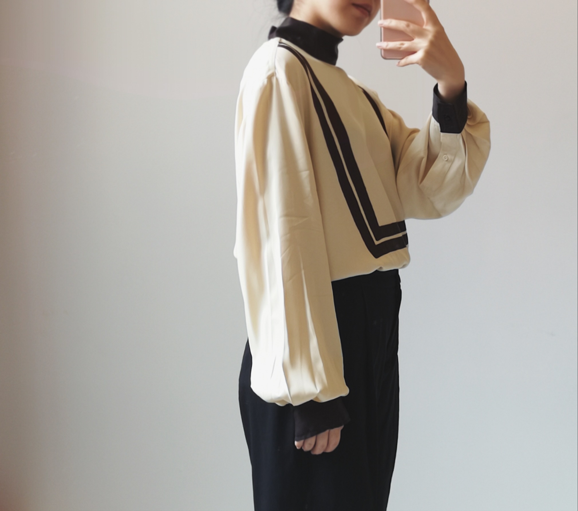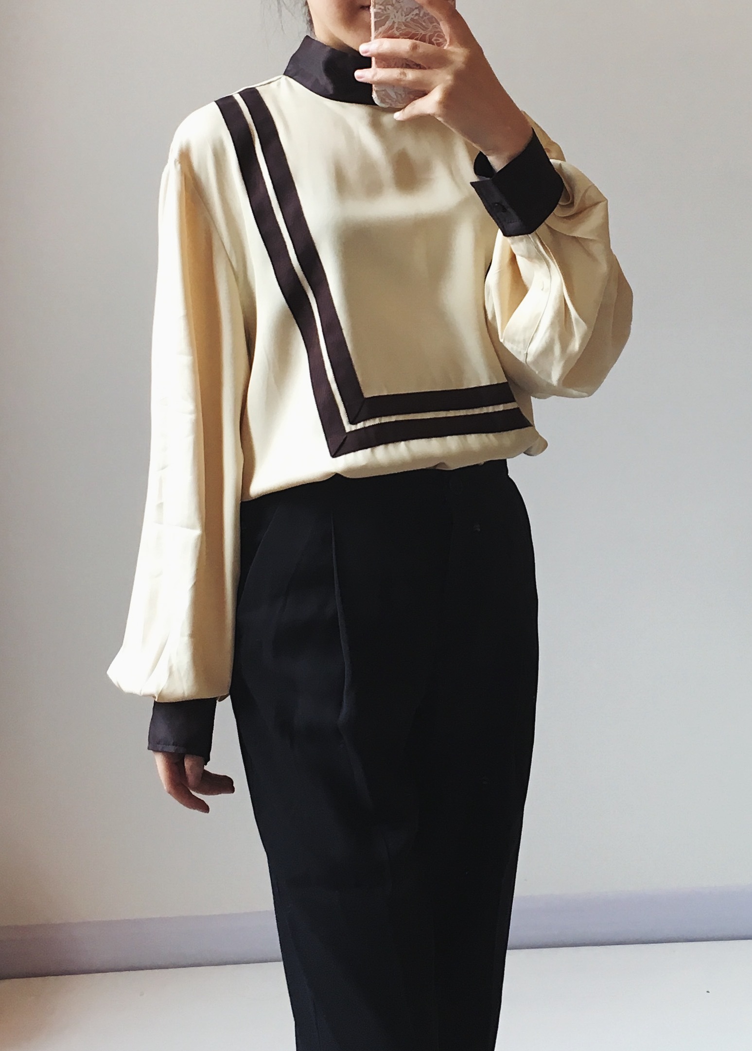 レトロなデザインのブラウスです!ワイドパンツとのコーデもおすすめです!!
