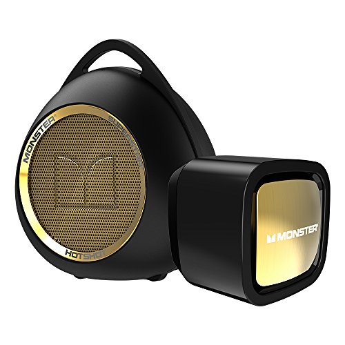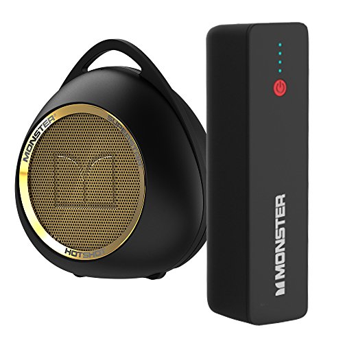 Monster superstar hotshot Bluetooth speaker, black/gold, and USB wall charger bundle - Monster sound made portable and affordable.