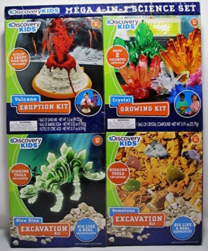 -. Title : Discovery Kids Mega 4 in 1 Science Set - Volcano, Crystal, Glow Dino, Gemstone