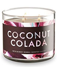 -. Binding : Kitchen -. Brand : Bath & Body Works -. EAN : 0667546364043 -. Feature : Creamy Coconut, Spiced Banana, Dark Rum / Topped with a flame-extinguishing lid / Burns approximately 25 - 45 hours / Measures 4" wide x 3 1/2" tall -. Label : Bath & Body Works -. Manufacturer : Bath & Body Works -. ProductGroup : Home -. ProductTypeName : HOME -. Publisher : Bath & Body Works -. Studio : Bath & Body Works -. Title : Bath and Body Works White Barn 3 Wick Scented Candle Coconut Colada 14.5 Ounce -. UPC : 667546364043