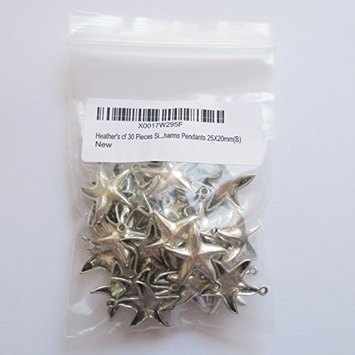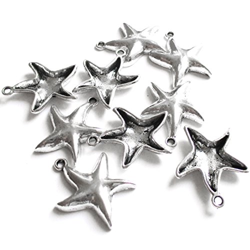 Heather's cf 30 Pieces Silver Tone Big Starfish Ocean Animal Beads DIY Charms Pendants 25mmX20mm