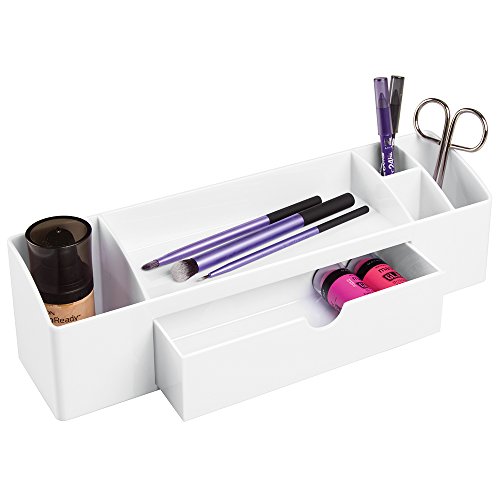mDesign Med+ Storage Box Organizer for Vitamins, Medicine, Medical, Dental Supplies with Drawer - 12" Long, White