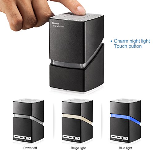 Bluetooth speakers Using aluminum alloy pressure casting and 18 CNC, Metal matte, no residual fingerprints, feel more comfortable, beautiful appearance, Shape creation inspiration comes from domestic appliance,the bluetooth speakers has blue and white light bulb, the charm of night light more beautiful.