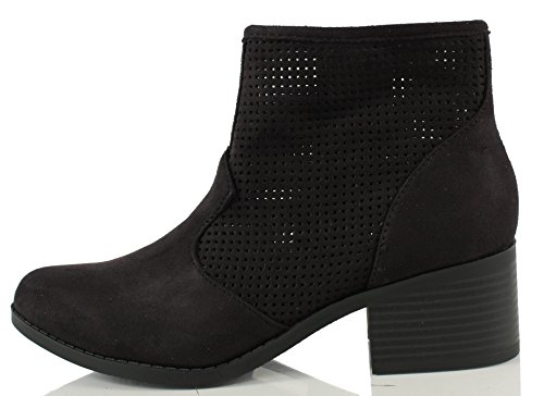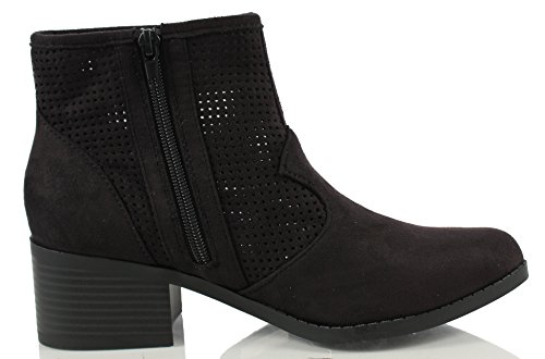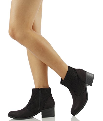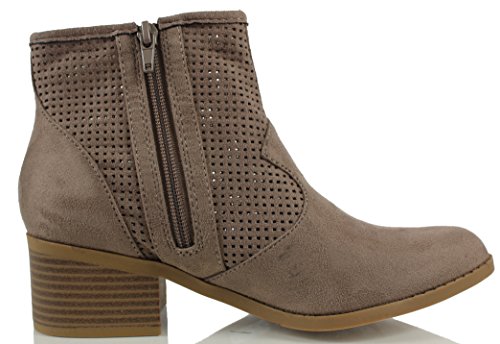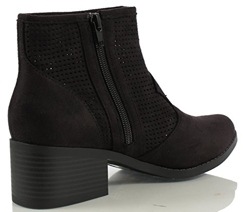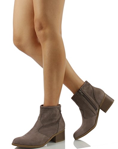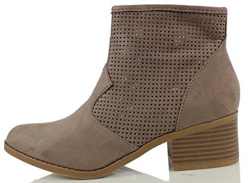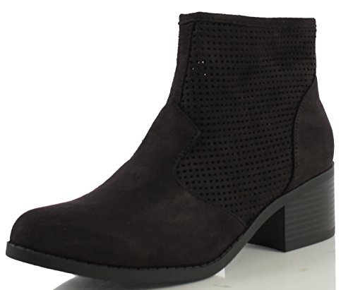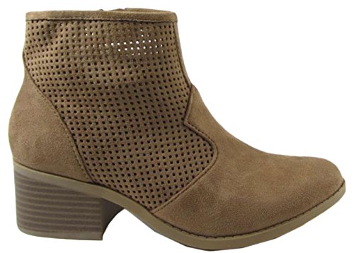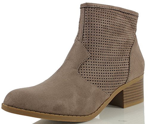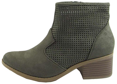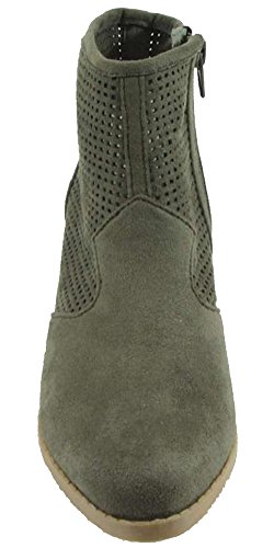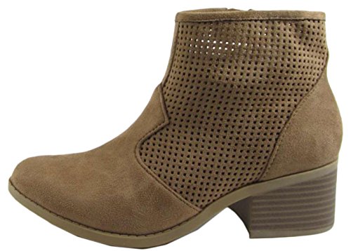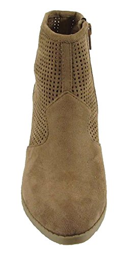 City Classified Women's Weezie Perforated Faux Suede Cowboy Low Stacked Heel Ankle Booties