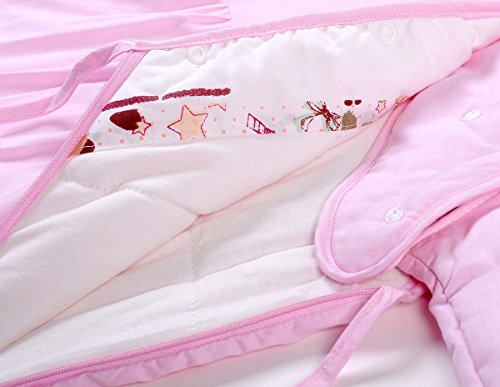 Feature : This sleeping bag comes in 3 sizes--Size 90cm(6 Months-2 Years): suitable height is 60-90cm/23.62-35.43inch; Size 105cm(1-5 Years): suitable height is 75-105cm/29.52-41.33inch; Size 120cm(3-6 Years): suitable height is 90-140cm/35.43-55.11inch. / This sleeping bag has two different thickness: the quilted cotton sleepbag is fit for use in spring and autumn(good when the room temperatures around 20 degrees); the thick cotton sleepbag is fit for use in fall and winter(good when the room temperatures around 20 degrees). / Our baby sleeping bag is an 100% cotton sleeping bag with removable arms and zipper on the bottom, which is more convenient for baby and you. / Clever shoulder make placing a sleeping or standing baby in the sleep nest a cinch / When you sleep, your baby sleep, this baby sleeping bag can give your baby a warm environment in which they can sleep better and won't get sick or catch cold so easily.