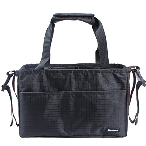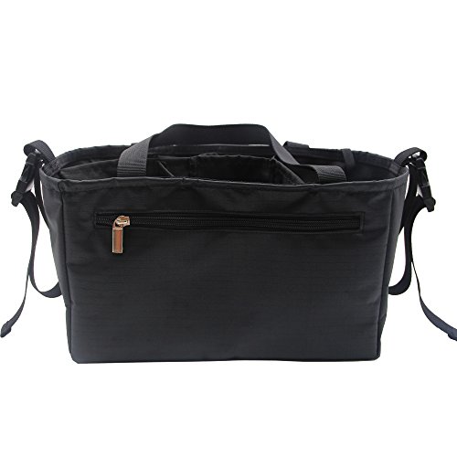 Damero Insert Organizer (Sewn to the Bottom) for Women's Bag / Diaper Bag with Handles and Stroller Straps (Black)