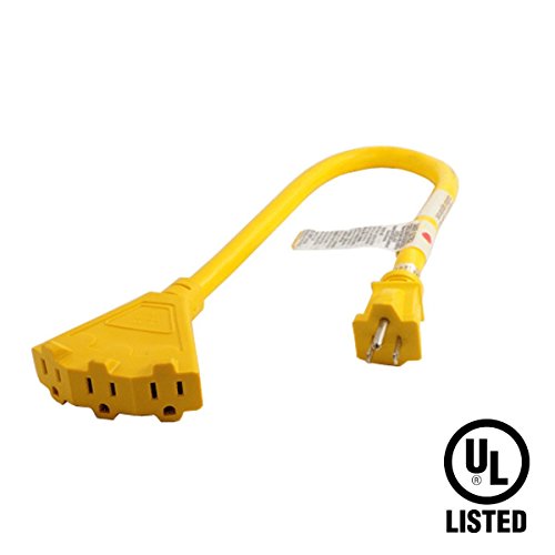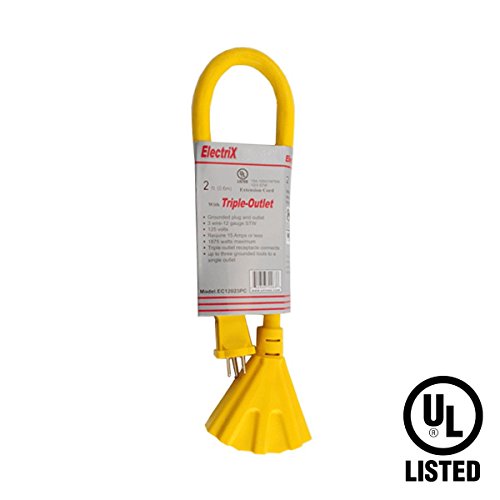 Electrix 12/3 AWG Gauge STW Power Block 2FT Heavy Duty Extension Cord With Triple ( 3 ) Outlet UL Listed Contractor Grade Extra Thick