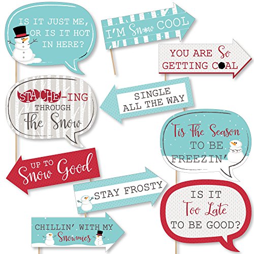 Studio : Big Dot of Happiness, LLC Publisher : Big Dot of Happiness, LLC Binding : Toy Product Description If you are going to have a party, then having these Funny Let It Snow - Snowman - Christmas Holiday party photo props is a must. Our photo prop kit will help you easily create fun party photos at your party. The photo booth prop kit comes with 10 pieces and is ready for quick assembly. Simply add the included wooden dowels to each prop, attaching with the included clear stickers, and display alongside a fun photo booth backdrop. Your party guests will enjoy using the accessories to liven up your photos! 0