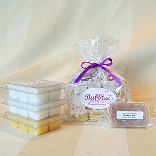 - All Natural, GMO FREE Vegetable Wax Melts. 3 Packs. Weight 2.7 oz each. FREE Guest Soap.