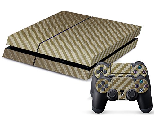 Crazy Genie Crazy Genie Gaming Carbon Fiber Decal Skin Stickers for Playstation PS4 Console + 2 Pcs Stickers for PS4 Controller (Carbon Fiber - Gold)