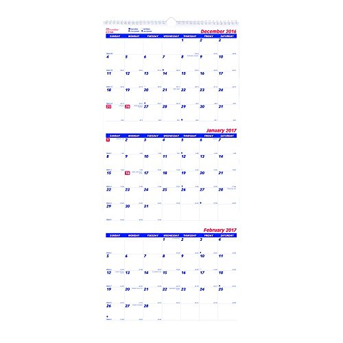-. Title : Brownline 2017 3-Month Wall Calendar, 3 Months on each Sheet, 12.25 x 27 inches (C171128-17)