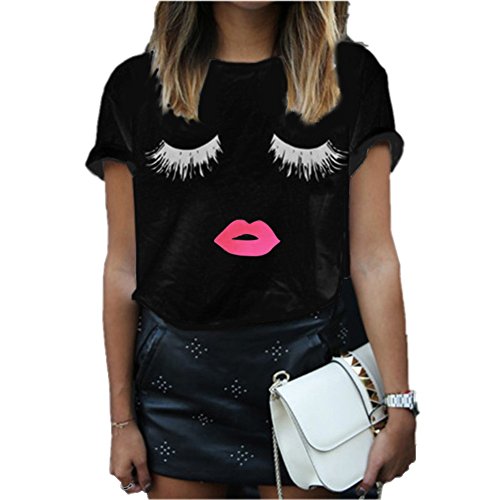 -. Binding : Apparel -. Brand : Whatwears -. Department : womens -. Feature : WHATWEARS Women T-shirts Short Sleeve Eyelash Lips Loose Tops Blouse Shirt / SIZE: This item is Asian size, which is about 2-size-smaller than US size / Please refer to pictures for size chart. / As different computers display colors differently, the color of the actual item may vary slightly from the above images. / From a trusted seller & delivery time is about 10-20 days. -. PackageQuantity : 1 -. ProductGroup : Apparel -. ProductTypeName : SHIRT -. Title : WHATWEARS Women T-shirts Short Sleeve Eyelash Lips Loose Tops Blouse Shirt