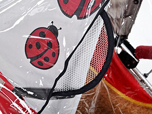 -. Feature : Clear view transparent cover / Easy access front flap w/ side netting ventilation / Helps protect child from rain, snow, wind, & the cold / Storage bag included for compact storing & traveling / This baby stroller weather shield cover is suitable for strollers with armrest distance of 21.65"; Please note stroller is not included
