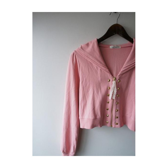 컬러는 핑크에 프론트의 ZIP의 양싸이드에 스탓즈가 대접해지고, ZIP의 손잡이 부분으로 레이스가 붙고 있습니다.쇼트장에 볼레로와 같이 원피스등과 맞춰 보면 귀엽습니다☆