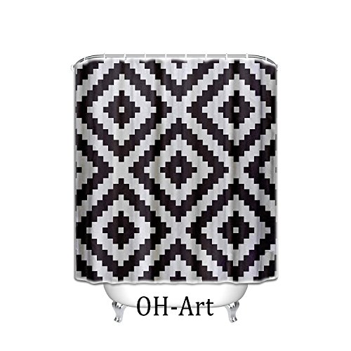 Black and White Diamond Grid Pixel Water Repellent Mildew-free Fabric Shower Curtain, Machine Washable 70 inch Long x 70 inch Wide